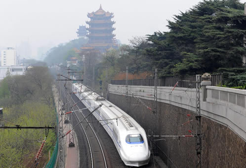 武漢至上海的D3012次動車組經(jīng)過武漢黃鶴樓下駛上武漢長江大橋。新華社記者 程敏 攝(資料圖)