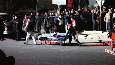 轎車內(nèi)一名死者的遺體被運離現(xiàn)場。