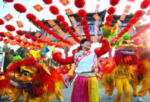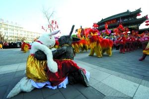 昨日,在地壇廟會開幕式上,國家“非遺”項目滄州舞獅表演吸引了不少觀眾。首席攝影記者 吳寧/攝