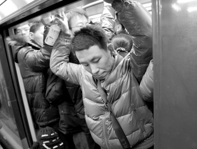 “人進去,相片出來;餅干進去,面粉出來……”這些形容北京地鐵擁擠的夸張語言詼諧幽默,悲喜交加,它們出自“北京地鐵生存手冊”等網上熱帖,隨著北京地鐵新線不斷開通,客流量持續攀升,北京“地鐵族”已成為一支數百萬人的龐大隊伍。