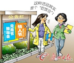 西方情人節(jié)才走,號(hào)稱中國(guó)情人節(jié)的“元宵”又接踵而至,一個(gè)星期連續(xù)經(jīng)歷兩個(gè)“情人節(jié)”的洗禮,淡定的寂寞的心又變得躁動(dòng)——“剩斗士”們想找一個(gè)人相伴而過。或許正是看中雙節(jié)過后單身男女內(nèi)心的不安,形形色色的相睇活動(dòng)又“活躍”起來。不過對(duì)于有過三次參加相睇活動(dòng)經(jīng)歷的網(wǎng)友“武松打虎”而言,靠相睇尋真愛是“浮云”,他甚至直言有的相睇活動(dòng)只是“吃飯會(huì)”,還不如上網(wǎng)發(fā)帖征女友來得“快狠準(zhǔn)”……