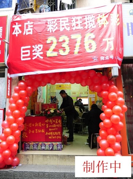 彩票銷售點掛起大紅橫幅迎巨獎