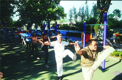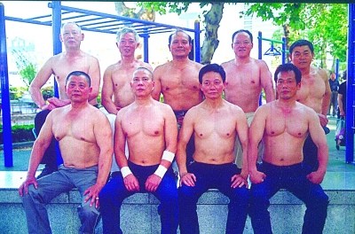 走進任師傅的家,簡直是一個家庭健身房。“因為每天都要鍛煉3個小時左右,有時候天氣不好實在不想出去,就逐漸在家里打造出很多的健身器材。”因為住一樓,院子自然成了主要場所,高高低低的雙杠、單杠就有三四組,石鎖,啞鈴等等也能放成一小排。“家里主要就放點瑜伽墊子、臂力器,還有拳擊用的訓練設備”。對擁有一個“施瓦辛格”般健壯的大力士形象是時下不少年輕男士的目標,逸仙橋卻有支平均年齡超過60歲的老年健身隊,幾乎個個練就一身健美身材。他們不僅一身肌肉,更有著各種玩單杠、雙杠的絕活,最厲害的能單手舉起80公斤石鎖。
