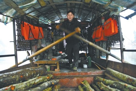 每逢趕場天,渡船南北兩岸奔波不停,去時載人,回來時,豬、牛、羊、電視、摩托車全都涌上船。到岸后,他們還幫著村民卸貨,船艙里留下的垃圾和牲畜的糞便只得自己清掃。