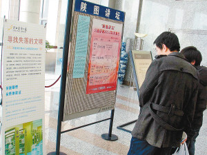 為了能夠讓滯留在讀者手中的圖書重新發揮作用,去年10月15日,省圖發起了“尋找失落的文明”的活動,規定在2011年2月28日前歸還2009年8月15日以前未還的圖書,可免去讀者超期借書所產生的滯納金,并可免費更換新圖書證。