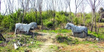 老人告訴記者,當時曉村多是一些外來戶,不僅村子小姓氏也雜,因此沒人知道古墓的來歷。后來石山被開礦炸平,現在已經新建了居民小區。記者在古墓前,也只找到了一對高約1.5米的石馬,仍舊站在荒草叢生的墳冢前在替主人守墓,石馬身上的雕刻十分精美,雖經歲月磨礪,仍體現出墓主人昔日的尊貴。