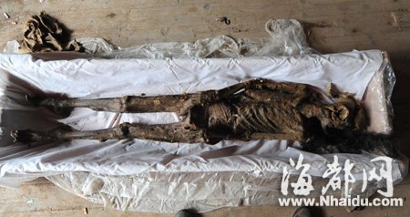核心提示:發現一具數百年前干尸的消息,一下打破南平浦城石陂鎮一個叫連墩村的小山村的寧靜,甚至有人驅車上百公里來看熱鬧?煽脊艑<亿s到現場時,卻連聲感嘆,太可惜了。因為這里被2次挖開,里面的陪葬品幾乎蕩然無存。