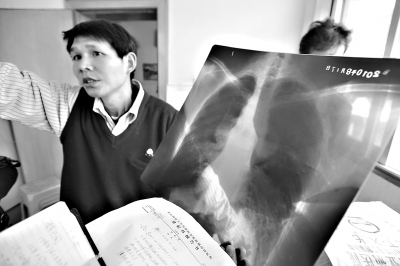 徐新國拿出塵肺診斷結果和X光片,不知怎樣討說法。 記者劉斌 攝