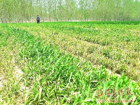 在莘縣董杜莊鎮,澆過污水的小麥漸漸變黃死掉。 本報記者 劉彥朋 攝