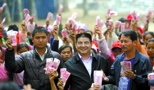 3月16日,陳光標(biāo)到盈江“3·10“地震災(zāi)區(qū)為受災(zāi)群眾發(fā)錢。張玉杰