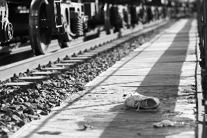 鐵軌旁,一雙白球鞋橫臥在血泊之中。昨天下午3點18分,一名27歲的男子在穿越八里橋鐵道橋時,被火車軋過,送解放軍263醫院,搶救無效身亡。