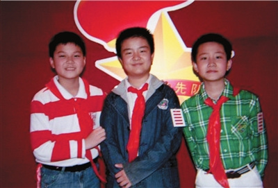 黃藝博博客上貼出的與少先隊“同事”的合影。實習記者趙恩澤翻拍