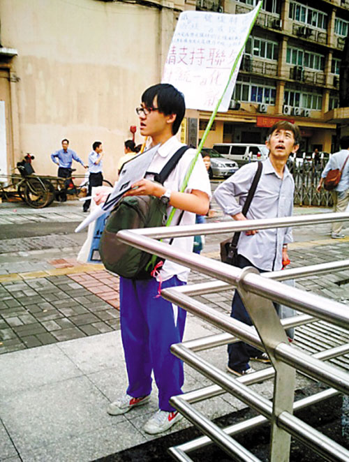 穿著校服,舉著橫幅,利用放學時間在地鐵口收集市民意見,對地鐵一號線車站翻新工程提出批評———近日,廣州一名中學生在新浪微博上一“舉”走紅。羊城晚報記者經過多方尋找,發現這名“橫幅哥”就是本版《地下鐵接龍》欄目第260期的“主持人”、來自廣州某中學的陳同學。