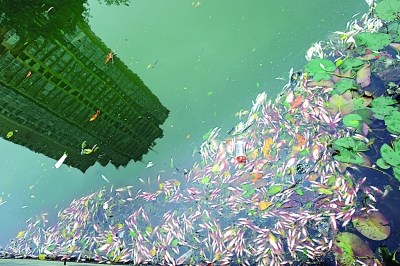 內秦淮河河面上的死魚。 范曉林 攝