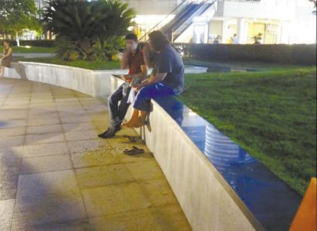 5月29日晚上9點半左右,網友“白白的太陽”在和義大道星巴克前的噴前邊,看見兩名外籍男子坐在草坪邊上嗑瓜子,腳下吐了一地的瓜子殼。