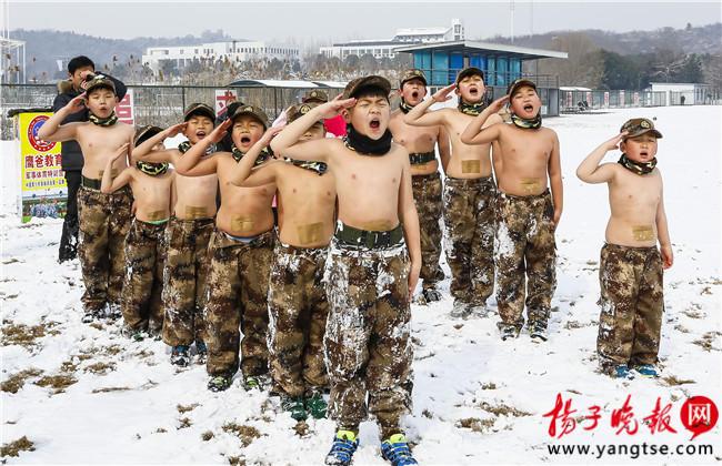 2月1日上午11時,雪后初晴,室外溫度約在零攝氏度,在位于南京市仙林地區的江蘇體育學院操場上,一群孩子在“鷹爸”何烈勝和“祼跑弟”組織和帶領下進行著一場難得的“雪地裸身”訓練。此次參加的共有14個孩子,其中3個女孩,最大的上6年級,最小的只有3歲,她正是“裸跑弟”的妹妹何宜靜。 圖片來源:揚子晚報網