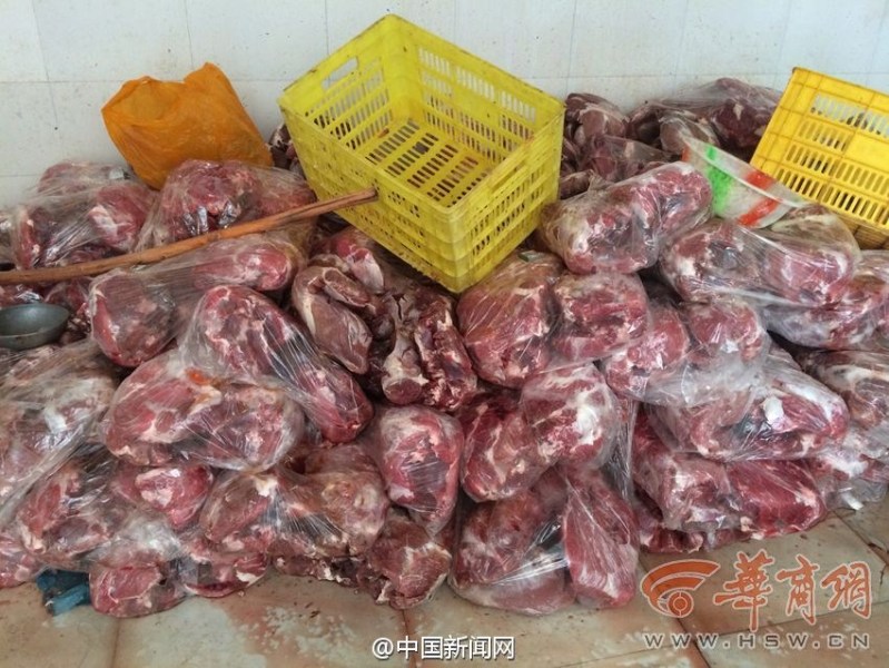 近日,陜西省涇陽縣執法部門查處了一家鹵制品加工點。作坊里存放的豬肝已長滿了綠色霉點,散發臭味。包裝完好的豬心上顯示產地是美國弗吉尼亞州,都過了保質期。靠墻的地上還堆放著千余斤冷凍肉類。