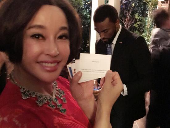 12日,劉曉慶微博曬照,稱:“剛剛見了美國總統(tǒng)奧巴馬,做為奧巴馬的NO.1 VIP貴賓。”劉曉慶穿紅裙大氣端莊,奧巴馬在花園里發(fā)表了近40分鐘的演講。