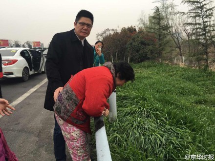 李征琴所乘的車(chē)輛突然停下,李征琴下車(chē)后,扶著高速護(hù)欄向外嘔吐。