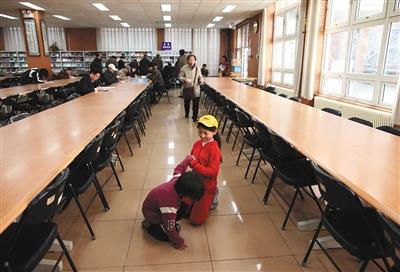 2011年3月26日,北京八中,一9歲女孩報名少兒班,她的媽媽在咨詢報名,她和弟弟在玩耍。 韓萌 攝