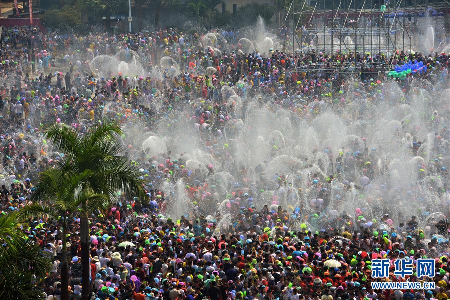 4月15日,人們在西雙版納景洪潑水廣場參加潑水狂歡。當(dāng)日適逢潑水節(jié),在云南西雙版納景洪市,數(shù)萬名當(dāng)?shù)厝罕姾屯獾赜慰妄R聚潑水廣場,潑水狂歡,互送祝福。 新華社發(fā)(萬霜降 攝)