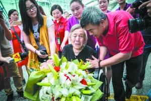 6月21日中午,飛越3000多公里,李淑榮老人從東北來(lái)到廣州,就是為了見(jiàn)73年未曾謀面的親姐姐。在廣州白云機(jī)場(chǎng)到達(dá)大廳,79歲的李淑榮艱難地從輪椅上起身,81歲的姐姐艾淑章放下拄著的拐杖。在眾人的簇?fù)碇,兩位白發(fā)蒼蒼的老人還沒(méi)來(lái)得及開(kāi)口,就相互攙扶著、緊緊相擁,姐妹深情化成一行清淚,欲語(yǔ)淚先流。