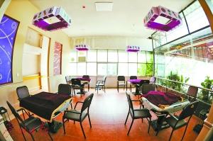 改造現場負責人蘇工帶記者來到了酒店大樓右邊原是酒店KTV的地方,養老院就設在這個兩層樓里。小樓外面是假山,看上去略有些厚重,進了大門后的院子原是KTV的表演大廳,還保留著當時的各種怪樹造型。恍惚間,感覺如同進了游樂園一般。