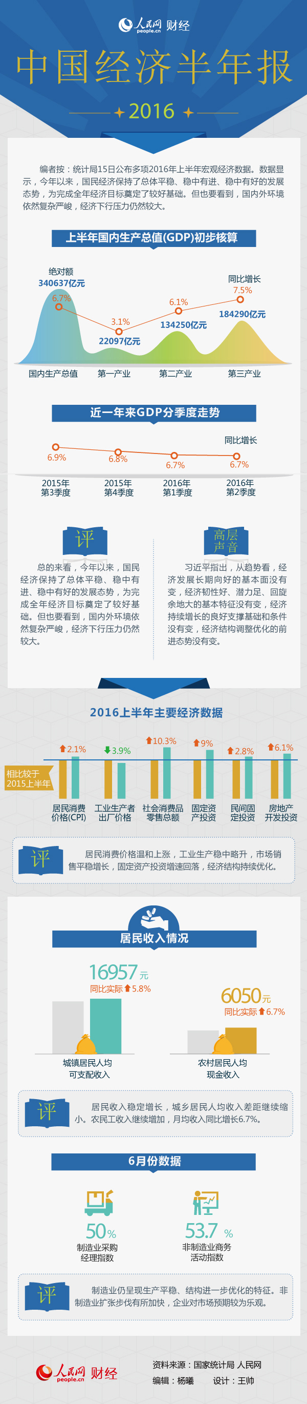 一張圖讀懂2016上半年多項宏觀經濟數據--財經--人民網