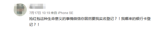 被問到現在是否進行了實名認證,這位網友說:“還是不了吧,我覺得在社交軟件上最好不要有太多個人信息,把身份證銀行卡都傳上去,心里覺得不安全,不踏實。唯一的痛苦就是眼睜睜看著紅包又搶不了,太難受了。”