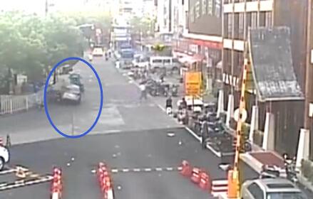 監(jiān)控顯示,8月1日凌晨5點(diǎn)48分,這輛轎車(chē)在梅州街轉(zhuǎn)彎時(shí)因車(chē)速過(guò)快發(fā)生了側(cè)翻。事發(fā)后,周邊居民把車(chē)上的4人救了出來(lái),并立刻報(bào)了警。