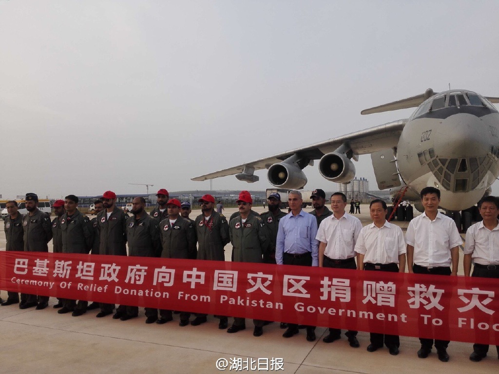 湖北日報:【巴基斯坦政府向湖北災區捐贈1萬噸大米 首批22噸大米運抵天河機場】22日18時,一架巴基斯坦軍用運輸機滿載著巴基斯坦人民的愛心,飛越千山萬水,徐徐降落在天河機場,機上滿載著巴基斯坦政府捐獻給我省災區的首批22噸大米。