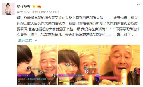 妞妞發(fā)文稱:“昨天因?yàn)榘职譄跞饨o我吃,我自己直播會(huì)粉絲聽(tīng)到了老爸的聲音強(qiáng)烈反應(yīng)要看看,爸爸也挺想念大家就露了個(gè)臉……”