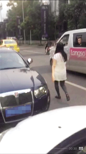 女司機逆行被“擋駕” 與人爭執險被自家車碾壓(圖)
