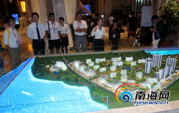 文昌高龍灣1號的工作人員向網媒記者介紹該地產樓盤項目。 南海網記者陳望 攝