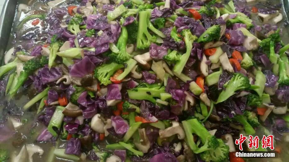 近日,網(wǎng)絡(luò)熱詞“藍(lán)瘦香菇”讓眾網(wǎng)友腦洞大開,日前,有食堂更將“藍(lán)瘦香菇”搬上餐桌。19日,湖南大學(xué)第二食堂正式推出創(chuàng)意料理“藍(lán)瘦香菇”,這也引來許多學(xué)生前來嘗鮮。圖為湖南大學(xué)第二食堂10月20日推出的新版“藍(lán)瘦香菇”,食材除了西蘭花和香菇外,還增加了紫甘藍(lán),這道菜仍引來許多學(xué)生前來嘗鮮。據(jù)了解,當(dāng)前的單價(jià)仍為3.5元。(湖南大學(xué)第二食堂相關(guān)負(fù)責(zé)人李建紅供圖)