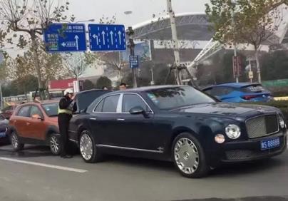 今日網友爆料:嘉興體育中心附近,一輛小車追尾了豫S88888賓利!我的天吶,豫S88888賓利?整個朋友圈刷爆了!