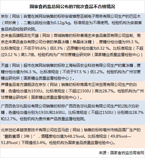 酒類也是許多人的必備年貨,部分酒類抽檢結果不合格。內蒙古檢出某廠家生產的酒類甲醇超標,吉林檢出有葡萄酒甜蜜素超標,湖南某廠家酒類氰化物超標,還有安徽、廣東等地檢出部分樣品的酒精度不達標情況。
