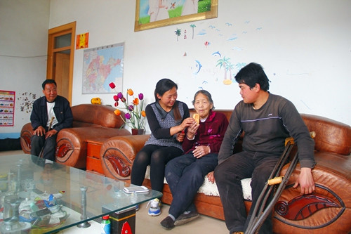 除了地里的活,張敏敏還要照顧一家老小。奶奶生活不能自理,公公自幼患有小兒麻痹癥,行走不便,丈夫左小腿截肢,無法正常行走,年幼的兒子還要上學,他們都離不開張敏敏的照料。