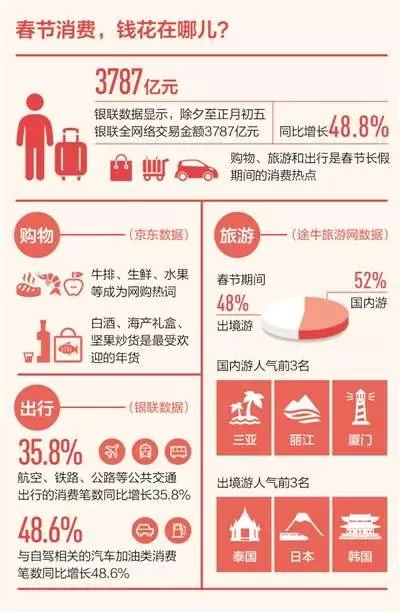 7天假期已經結束,中國人的消費清單也逐漸出爐。下面,就請跟著小編一起,看看這個春節大家是怎么消費的吧!