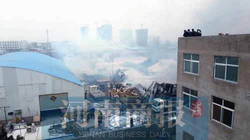 6日下午1點20分許,管城區南曹鄉政府向南約100米路東一處工廠突發火災,多輛消防車隨后趕至現場進行救援。下午3點左右,河南商報記者在現場看到,大量濃煙飄在空中,有數十米高,事發路段停靠有六七輛消防車。據現場村民介紹,失火的是一家沙發廠,火勢迅速蔓延將廠房燒塌,相鄰的存放有潤滑油的倉庫也被引燃,現場不時有爆燃聲傳出。