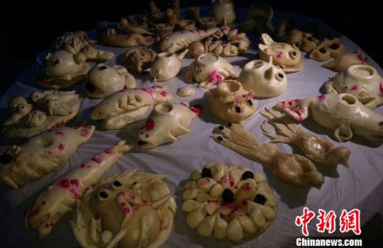 蒸制好等待展出的各式面燈。 朱志庚 攝