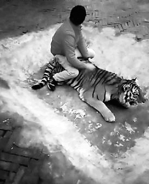 “與老虎待在一起很久,并不擔心老虎會攻擊或傷害,”他的語氣中透露著自信,在聊天中,他似乎并未意識到自己的行為存在虐待動物的嫌疑,他表示動物園也沒有反對這種行為,還表示類似的視頻每天都會拍。