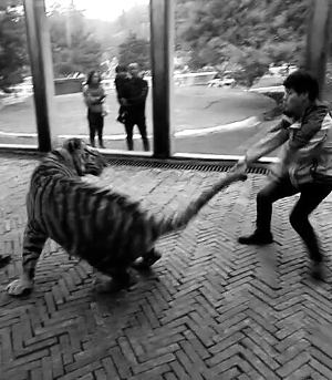 15日下午, 記者撥通了該野生動物園辦公室的電話,一名工作人員承認當事人是該園的一名馴獸師,但認為“那并不是挑逗”。