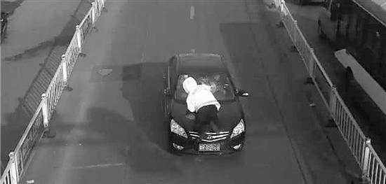 突如其來的場景讓梁興東嚇了一跳,他緊緊扒著引擎蓋,怕被撞飛。