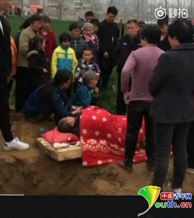 有知情者告訴中國青年網記者,12日上午宋某某家人發現老人失蹤,隨后在家中發現遺書,尋找過程中發現自家麥地出現一座新墳很奇怪,刨開墳墓后才找到奄奄一息的宋某某,就急忙撥打了報警電話和急救電話將老人送往醫院搶救,自己找到家屬時,家屬拒絕介紹更多情況。