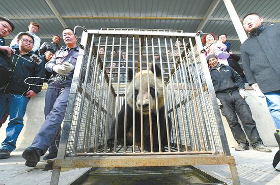 “‘蜀蘭’是有經(jīng)驗的熊貓,她一看到籠箱,就知道自己又要遠行了。這兩天都悶悶不樂得不愿出門‘見客’,很多來動物園的游客都無緣見她最后一面。”柳江說,動物園在起運前一天就提前將運送的籠箱進行了消毒,放入籠舍內(nèi),讓大熊貓適應籠箱內(nèi)環(huán)境,“蜀蘭”好像就已經(jīng)知道她要走了。