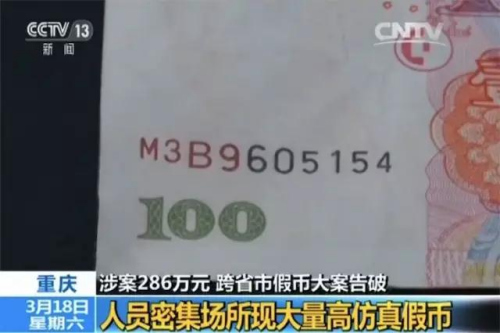 2016年底,重慶市渝中區警方陸續接到群眾反映,有人在重慶菜園壩火車站、汽車站等人員密集場所,大規模使用假幣。不久,多家銀行柜臺也向警方報案稱,有高仿真膠版印刷人民幣出現。民警立即展開調查,發現這些收繳來的假幣確實屬高仿版人民幣,且冠字號都相同,很可能是同一伙人所為。