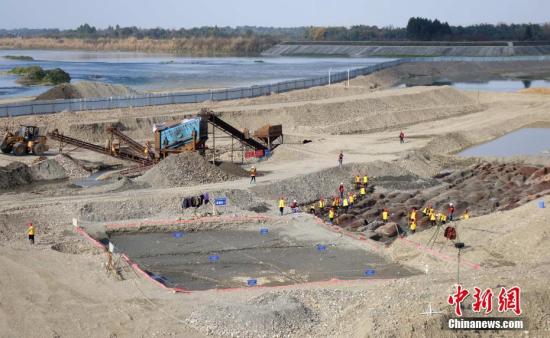 2月25日,彭山區岷江江口河道“張獻忠沉銀”遺址考古發掘現場。 中新社記者 劉忠俊 攝