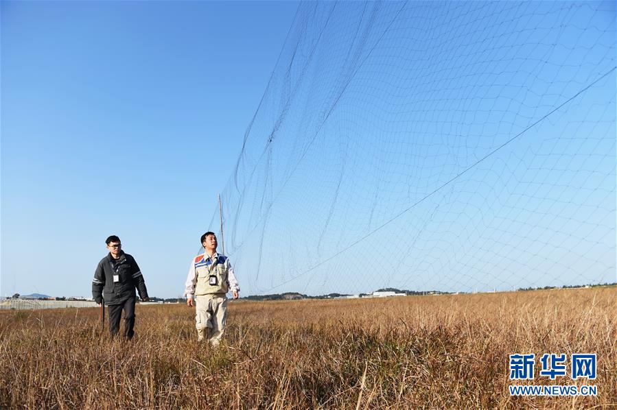 3月23日,福州空港建設管理部的鐘瑞鋒(左)和薛敬書在機場飛行區巡查攔鳥網。福州長樂國際機場有一支驅鳥隊,他們為了保護飛機起降安全,24小時全天候守護在機場,注視著飛行區域的風吹草動,擔負著空中“守護神”的職責。新華社記者林善傳攝