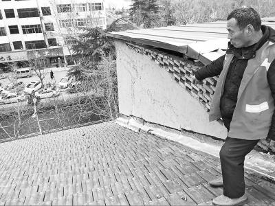 村民王根水爬到事發樓房房頂向記者還原當時救人時的情形,張貴民的兒子張曉鶴曾在這里試圖用繩索救人。